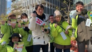 今朝は月島駅で皆様にご挨拶をさせて頂いております。